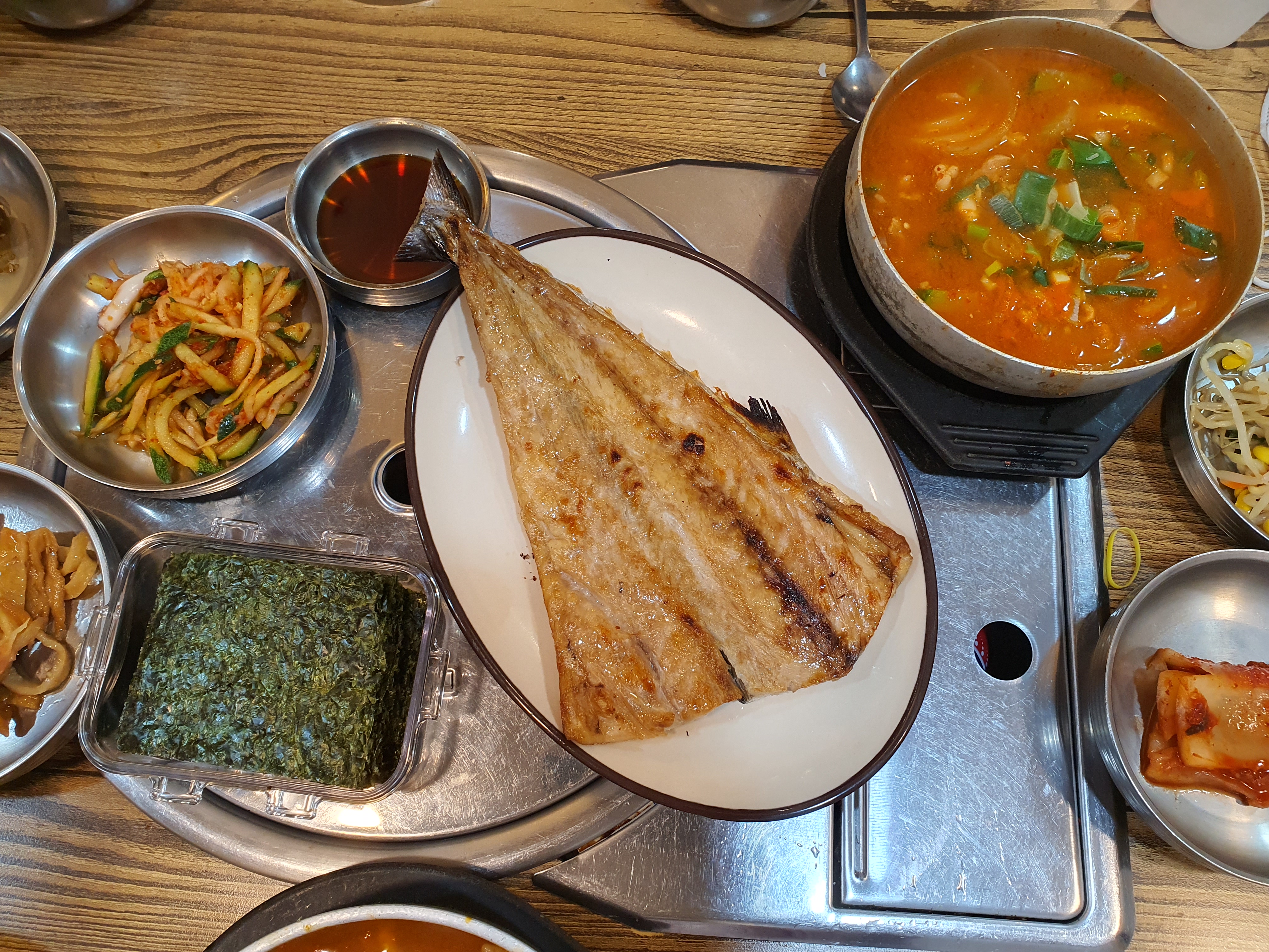 3인이 먹기에도 풍족했어요. 저희는 오늘 애호박찌개, 김치찌개, 삼치구이를 시켰는데 기다린 보람이 있네요. 번호 4번을 들고 기다리다 본점을 갈까 고민하다 번호를 받아서 그냥 기다렸답니다. 7시경에 오니 사람들이 정말 많네요.